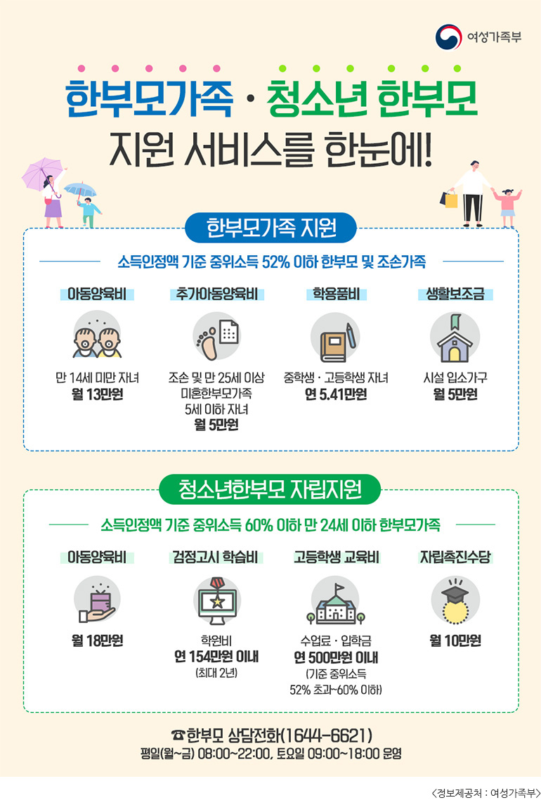 한부모가족·청소년 한부모 지원 서비스를 한눈에!